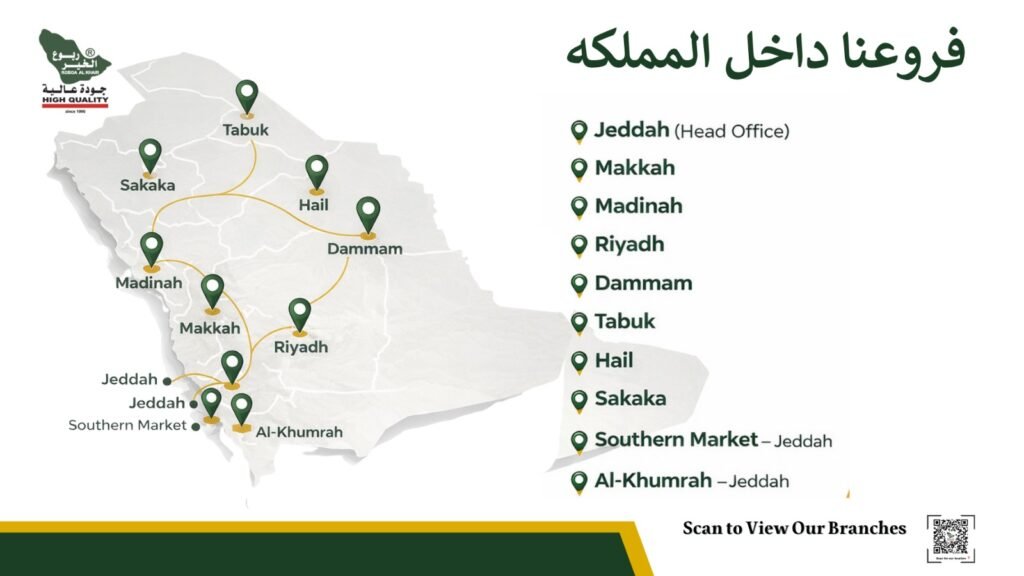 Rubu Al Khair has a strategic branch network comprising 10 branches, equipped with massive warehouses to ensure fast and efficient fulfillment of wholesale and supply orders.